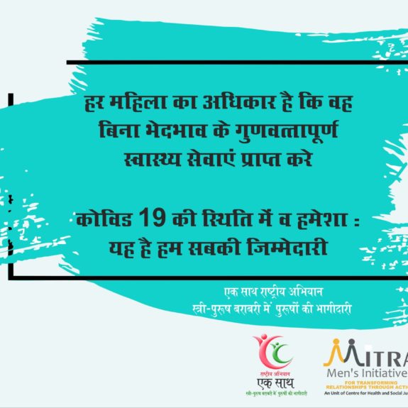 The Ek Saath National Campaign engages men and boys as partners for gender justice in changing gender social norms that are discriminatory. Ek Saath in Hindi means ‘together’ and here it denotes both partnership between men and women as well as that of men with other men for ending violence and discrimination against women and girls. The campaign is based on the principle of togetherness to change social norms.